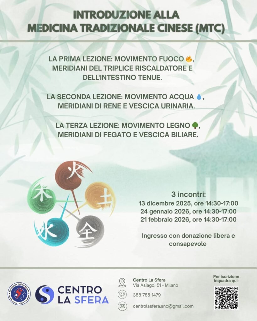 Prosegue presso il Centro La Sfera il percorso dedicato alla scoperta della Medicina Tradizionale Cinese (MTC), un sapere antico che osserva l’essere umano nella triade classica Corpo-Mente-Spirito, nel rapporto col mondo esteriore ed interiore. L’iniziativa è pensata per chi desidera avvicinarsi a questo mondo in modo semplice, esperienziale ed accessibile anche per i neofiti.